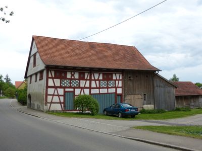 Stadel, zweigeschossiger Satteldachturm mit Fachwerk, bezeichnet 1715, 1797 und 1895 erneuert.
