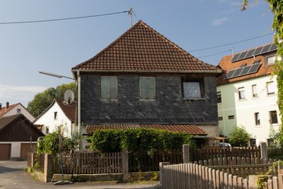 Wohnstallhaus, walmdachbau mit verschiefertem Obergeschoss, im Kern 18. Jahrhundert, Erdgeschossumbau 1833