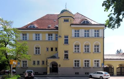 Finanzamt, ehemaliges Rentamt, seit 1919 Finanzamt, dreigeschossiger stuckgegliederter Walmdachbau in historisierenden Formen mit Treppenturm, 1903.
