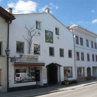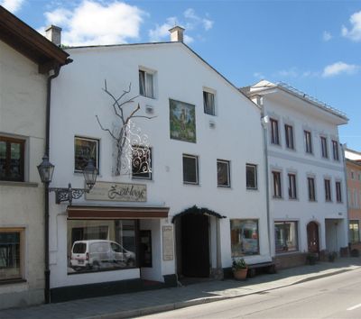 Wohnhaus, zweigeschossiger vordachloser Flachsatteldachbau mit Kniestock und Wandbild, im Kern 18. Jahrhundert, Fresko 1981 erneuert.