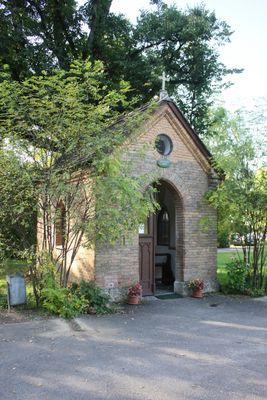 Sogenannte Hafnerkapelle, gotisierender Backsteinbau, Ende 19. Jahrhundert; auf dem Krankenhausgelände