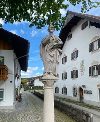 Säule mit Marmorfigur des Hl. Petrus, wohl 18. Jahrhundert, und Gedenktafel, 1830