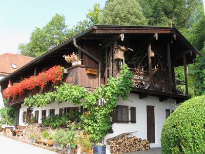 Ehemaliges Kleinbauernhaus, stark erneuert, mit Blockbau- Obergeschoss und Bundwerkteil, erste Hälfte 19. Jahrhundert.