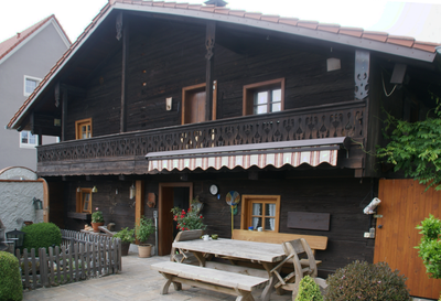 Ehemaliges Kleinbauernhaus, zweigeschossiger Blockbau mit Schrot, 18. Jahrhundert, im Erdgeschoss traufseitige Vormauerung, ehemaliger Wirtschaftsteil zu Wohnungen ausgebaut