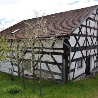 Scheune, mit hohem Kniestock und Fachwerk, erste Hälfte 19. Jahrhundert.