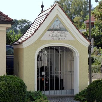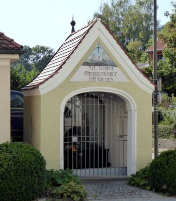 Kapelle in Gars, Kapelle, kleiner barocker Satteldachbau mit Putzgliederung und Malerei, 18. Jh.