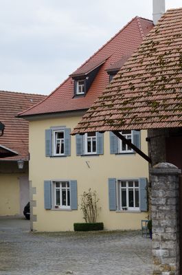 Hofanlage, Wohnhaus, zweigeschossiger Walmdachbau, Scheune und Nebengebäude, erste Hälfte 19. Jahrhundert