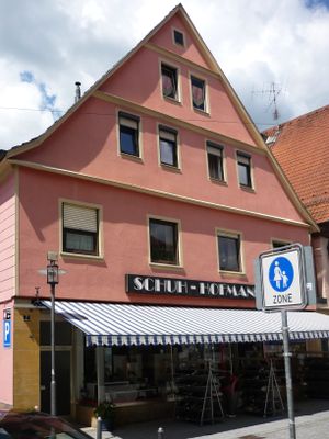 Satteldachhaus, zweigeschossig giebelständig, 1695, im Erdgeschoss moderner Ladeneinbau