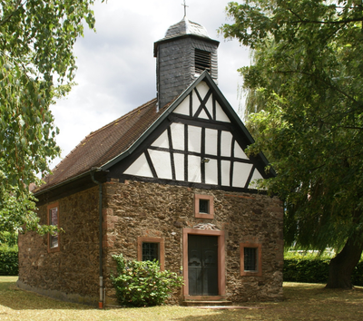 Wilgefortiskapelle, massiver Bruchsteinbau mit Fachwerkgiebel und polygonalem Chor, Dachreiter mit Kuppeldach, erbaut 1548, erweitert 1804