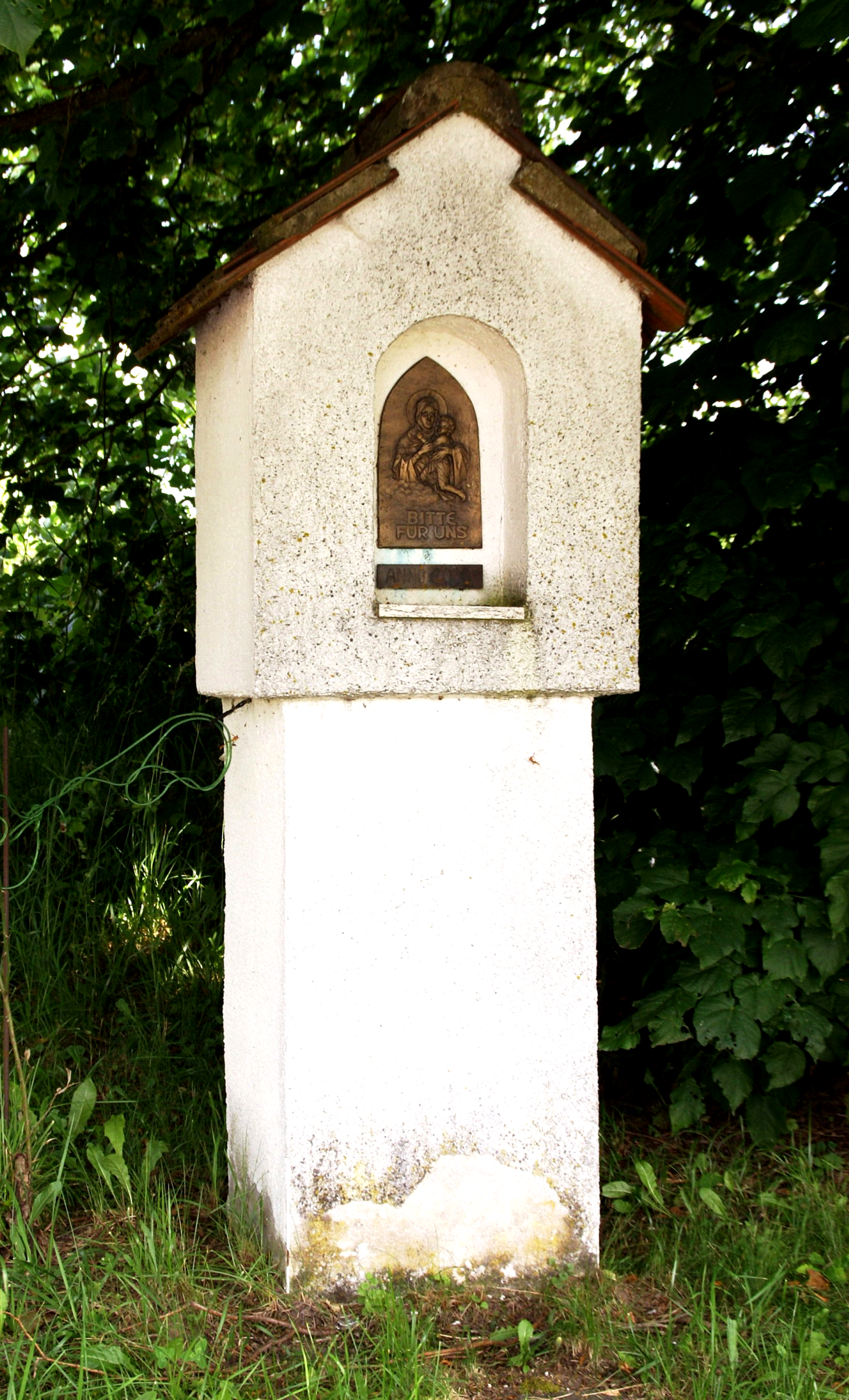 Weißes Hellchen, Bildstock, gemauert und verputzt mit Satteldach und rundbogiger Nische, 1. H. 20. Jh.