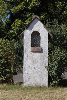 Bildhäuschen, sogenannte Weiße Helgen, aus Naturstein gemauert und verputzt, weiß getüncht, mit Satteldach aus Ziegeln abgeschlossen, an der Vorderseite eine rundbogige Nische, zweite Nische an der Seite