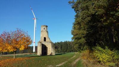 Kapellenruine, sogenannte Zirkelkappel, reste einer Kapelle mit rundem Westturm, Bruchsteinmauerwerk, wohl 15. Jahrhundert