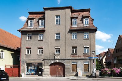 Ehemals Färberei und Mietshaus, dreigeschossiger, verputzter Mansardwalmdachbau mit Mittelrisalit und Rustikaportal, barock, bez. 1735, rückwärtig Satteldachanbau, um 1710