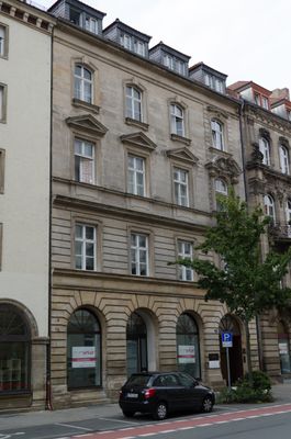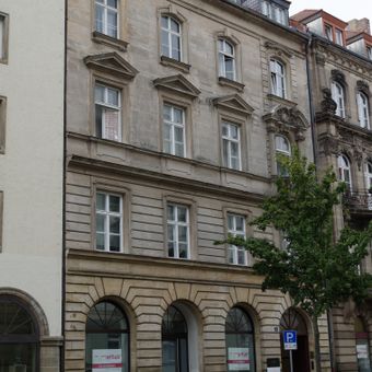 Mietshaus, viergeschossiger Sandsteinbau in barockisierenden Formen, das Erdgeschoss rustiziert, der Balkon im zweiten Obergeschoss säulengerahmt, von Carl Wölfel, um 1900