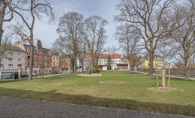 Lorenzpark, ehemaliger Lorenzfriedhof, heute schlichte Parkanlage auf dem Hügel nordöstlich der Lorenzkirche und um die Kirche; Gefallenendenkmal für 1870–1871