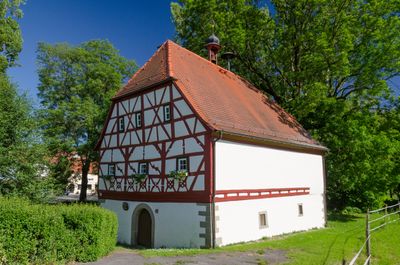 Ehemaliges Rathaus, zweigeschossiger und giebelständiger Halbwalmdachbau mit Fachwerkobergeschoss, bezeichnet „1598“
