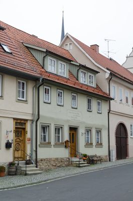 Satteldachhaus, traufständig, zweigeschossig, verputztes Fachwerk, 17. Jahrhundert