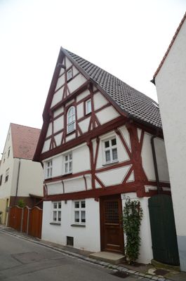 Ehemaliges Ackerbürgerhaus, zweigeschossiger Fachwerkbau mit giebelständigem Satteldach, dreifach vorkragend, spätes 15. Jahrhundert