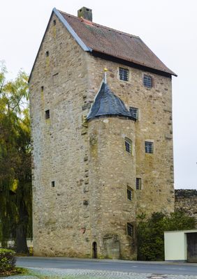 Obertorturm oder Maulaffenturm, Stadttorturm auf quadratischem Grundriss mit seitlichem Treppenturm, um 1335 und bezeichnet „1560“