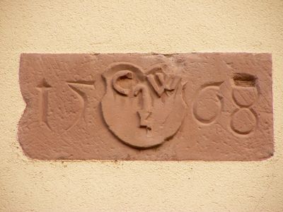 Wappenstein, sandstein, bezeichnet „1508“ oder „1568“