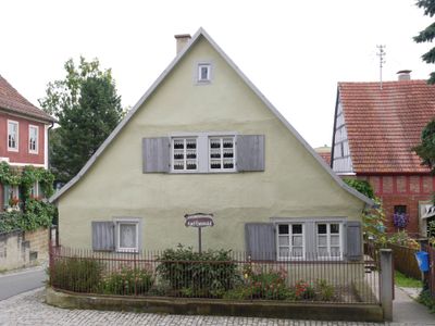 Eingeschossiges Giebelhaus, ehemaliger Krämerladen, Fachwerk verputzt, um 1690