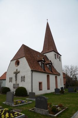 Besucher finden die Kirche in Urfersheim 27 in Illesheim, wobei die Friedhofsmauer die Grenzen des religiösen Komplexes markiert.