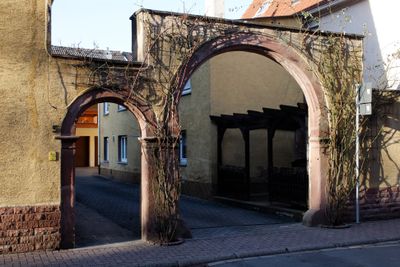 Doppeltor-Einfahrt, rundbogig mit profilierter Laibung, Sandstein, 1. Hälfte 17. Jahrhundert