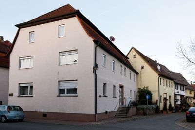 Zweigeschossiger Mansarddachbau, verputztes Fachwerk zum großen Teil massiv erneuert, bezeichnet 1808