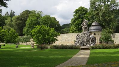 Unterer Abteigarten, ummauerte Gartenanlage, erste Hälfte 18. Jahrhundert, mit zwei runden Gartenpavillons, zweite Hälfte 18. Jahrhundert