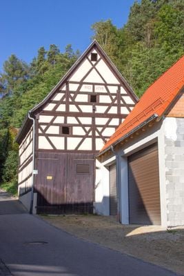 Scheune, Fachwerkbau, bezeichnet „1714“