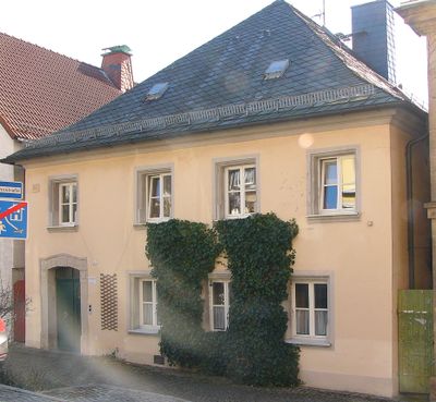 Ehemaliges Schul- und Kantoratshaus, zweigeschossiger Walmdachbau, geohrtes Sandsteintürgewände bezeichnet 1836; im Kern älter