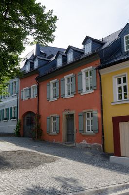 Wohnhaus, zweigeschossiger Traufseitbau mit Tordurchfahrt, Schieferdach mit kleinen stehenden Gauben, Biedermeier, erste Hälfte 19. Jahrhundert