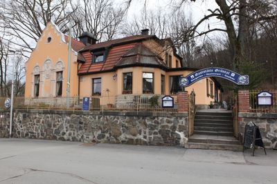 Gaststätte Grüntal, eingeschossiger Jugendstilbau mit Ziergiebel, bez. 1909.
