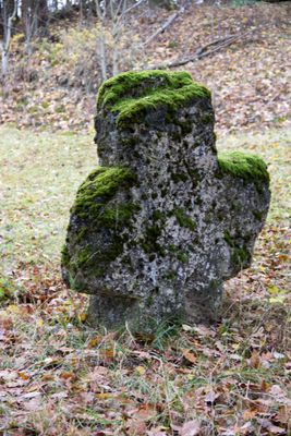 Steinkreuz, sogenannter Raubaus- oder Raubeinstein, mächtiges griechisches Kreuz, rechter Arm fehlt, wohl spätmittelalterlich