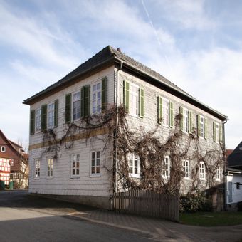 Walmdachhaus, zweigeschossig, zum Teil verschiefert, um 1800