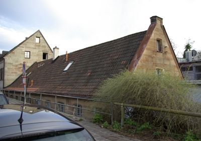Wohl ehemaliges Hammerwerk, zweigeschossiger langgestreckter Sandsteinquaderbau mit Satteldach, südseitig verputzt, modern bezeichnet „1688“