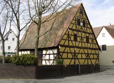 Scheune, eingeschossiger Fachwerkbau mit steilem Satteldach, westseitig verputzt, 18. Jahrhundert