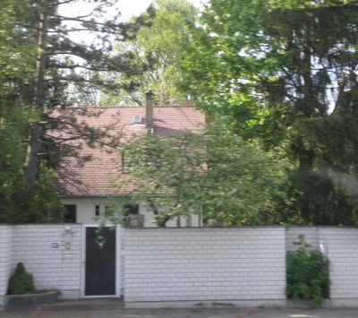 Einfamilienhaus, fertighaus, erdgeschossiger Satteldachbau in Stahlblech-Tafelbauweise auf gemauertem Sockel, von MAN-Stahlhaus, 1951