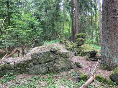 Ehemaliger Burgstall, sogenannter Mohrenstein, mauerreste aus Bruchstein über rechteckigem Grundriss, wohl mittelalterlich
