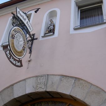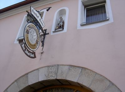 Bautafel, Bautafel, bez. 1835, Hausfigur hl. Florian.
