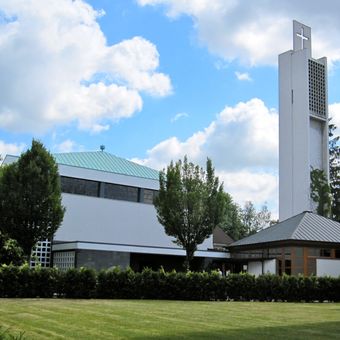 Die Kirche verbindet Elemente moderner deutscher Kirchenarchitektur mit traditionellen protestantischen Andachtsräumen.