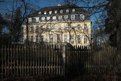 Die Villa im Louis-seize-Stil verfügt über aufwendige Fassadendetails, eine verzierte Treppe und ein Marmorbrunnen-Becken im umliegenden Park.