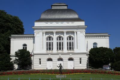 Das Stadttheater Rendsburg zeigt architektonische Elemente aus dem frühen 20. Jahrhundert mit einer markanten Fassade und dekorativen Innenräumen.