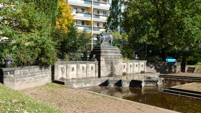 Während des Zweiten Weltkriegs wurden die originalen Bronzeskulpturen zur Metallsammlung entfernt, neue Figuren schuf Lothar Janus 1995.