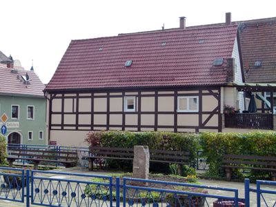 Wohnhaus in halboffener Bebauung Karl-Marx-Platz 5, Obergeschoss Fachwerk, baugeschichtlich von Bedeutung