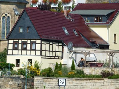 Wohnhaus in offener Bebauung Kirchstraße 4, älterer elbseitiger Teil mit Fachwerk, straßenseitiger Teil mit gründerzeitlicher Putzfassade, baugeschichtlich von Bedeutung
