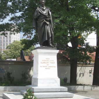 Bronze-Standbild Albrecht Thaer Universitätsstraße, Bronze-Standbild Albrecht Thaers (zeitweise hinter dem Lehrgebäude hinter Johannisallee 23)