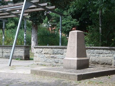 Apelstein Karl-Heine-Straße, Apelstein Nr. 23 (N); am Karl-Heine-Platz, Gedenkstein zur Erinnerung an die Kämpfe der Völkerschlacht bei Leipzig 1813, 10.000 Mann des IV. Korps unter General Bertrand (16. Oktober), geschichtlich von Bedeutung