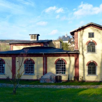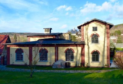 Saigerhütte ; Lichthaus Olbernhau, Einzeldenkmal der Sachgesamtheit Saigerhütte: alte Energiezentrale (Lichthaus) (siehe auch Sachgesamtheitsliste -Obj. 09205114, In der Hütte 1-20a); Sachgesamtheit Saigerhütte als bedeutendes technisches Denkmal, seit 1493 bestehende Kupferhütte,
