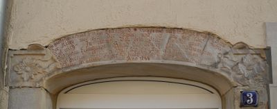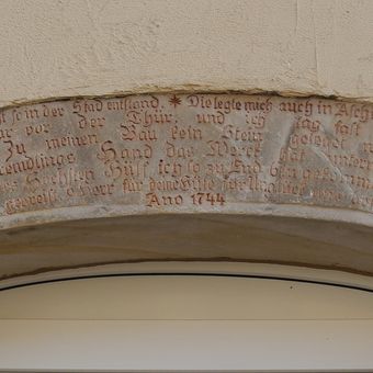 Barockes Segmentbogenportal mit Inschrift und Relief mit Innungssymbolik Freiberger Straße 3